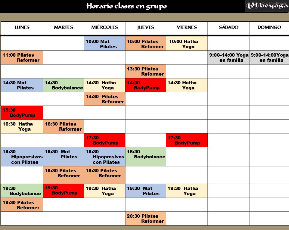Horarios Yoga Barcelona | Horarios Pilates Barcelona | Horarios LesMills Bodybalance | Horarios LesMills BodyPump Barcelona